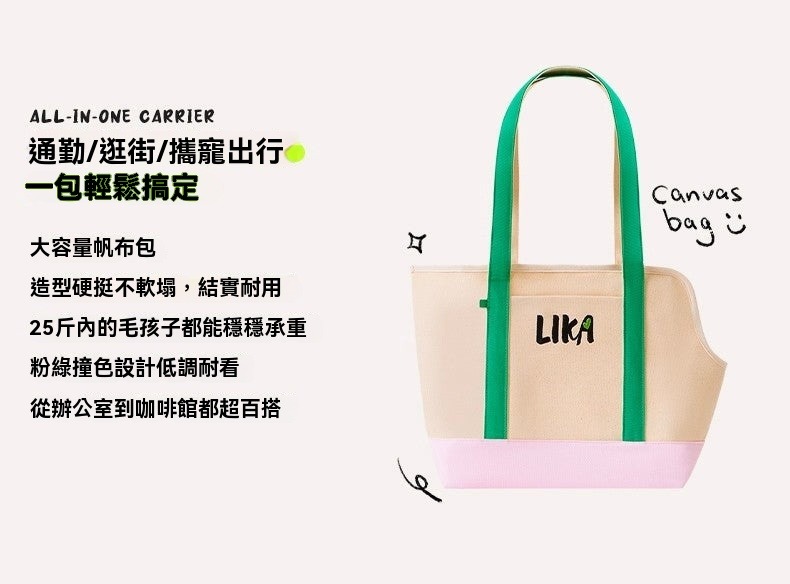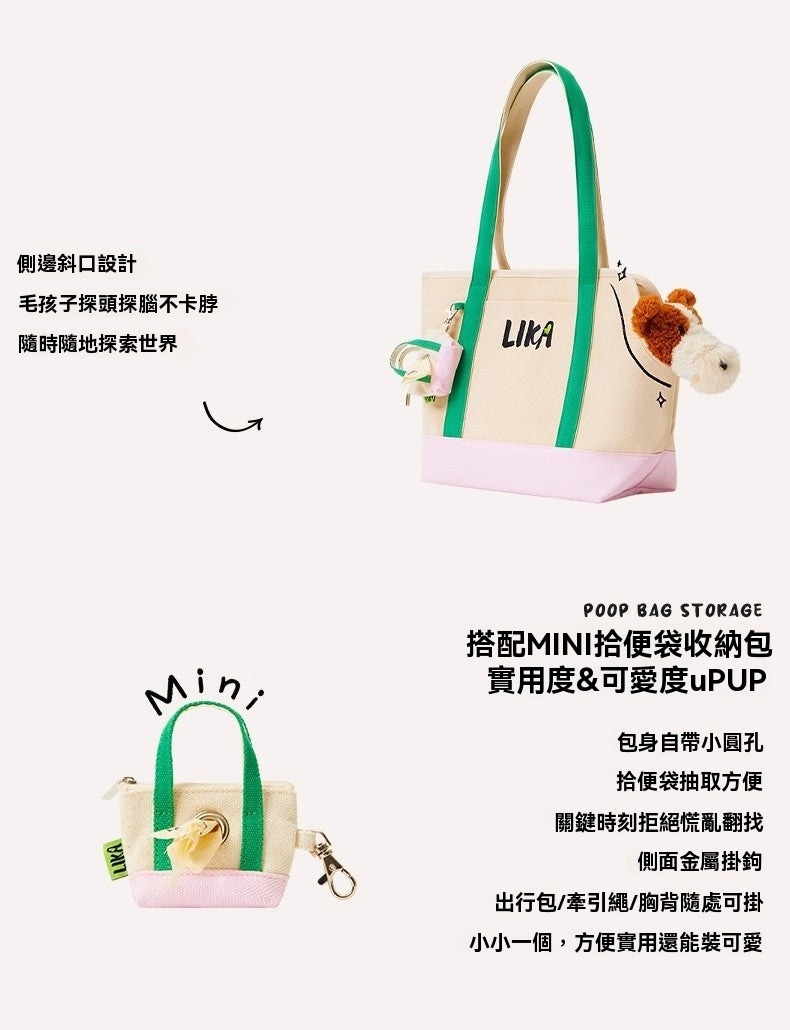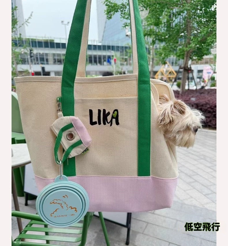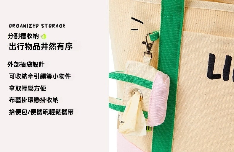 有 LIKAPAWS貓狗用品寵物帆布出行包拾便包撞色設計斜口寵物背包出行 適用於0-12.5kg狗狗